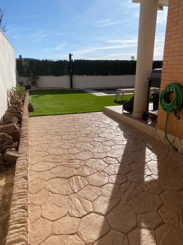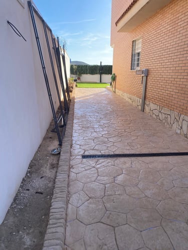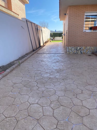 Se recomienda el recubrimiento de hormigón impreso para espacios abiertos, tales como rampas de estacionamiento, terrazas, calzadas, aceras y alrededor de una piscina.